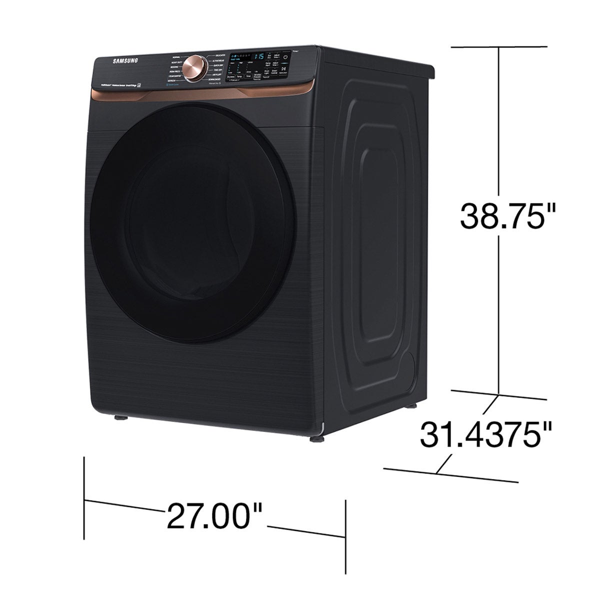 Dryer Dimensions: W x D x H27 in. x 31.44 in. x 38.75 in.
