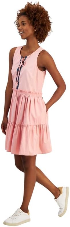 Nautica Jeans Women's Lace-Up Tiered Ruffled Dress (Bridal Rose, Medium)