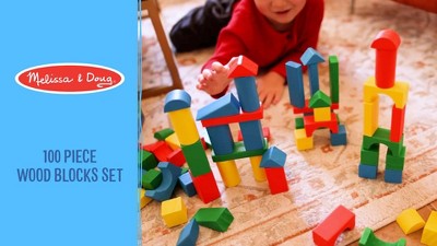 Highlights 100 solid wood building blocks perfect for hours (and towers!) of fun These building toy blocks come in 4 colors and 9 shapes Ideal for building and introducing early math concepts Engaging with the Melissa & Doug wooden building blocks set is a classic creative and educational activity Brightly colored wooden building blocks set makes a great gift for toddlers and preschoolers, ages 2 to 5, for hands-on, screen-free play; product made with FSC-certified materials that support responsible forestry; applies to new inventory only (FSC C156584) Description The Melissa & Doug Wooden Building Blocks Set offers endless opportunities for hands-on play and learning. With 100 solid wood blocks in four bright colors and nine classic shapes, toddlers and preschoolers can stack, balance, and build in countless combinations. Each block is sized just right for small hands, with smooth finishes and rounded edges for safe play. As kids create towers, bridges, and imaginative structures, they strengthen fine motor skills, practice problem-solving, and explore early math concepts like counting, sorting, and comparing shapes. Whether building solo or alongside friends, these blocks provide an open-ended way to encourage creativity, spatial awareness, and cooperative play. A sturdy storage box with handle makes cleanup and transport easy, so the building fun can continue wherever playtime happens. For even more imaginative role play, combine this with the Melissa and Doug wooden latches board, a Giant Giraffe & Burrow Bunny, or perhaps an Ice Cream Counter, Simmer & Stir Stovetop Play Set with Water Wow!® Color Changing Play Food & the Flip & Fry Kitchen Playset to create the ultimate pretend play world! For 35+ years, Melissa and Doug has crafted imaginative preschool toys and durable wooden toys built to nurture childhood wonder, with everything from a life-sized grocery store playset to a play kitchen playset and play food to serve plush toys & puppets, to costumes, arts & crafts, and road trip activities for kids. It’s the kind of kid-powered play that builds independence and confidence! This product is certified by the Forest Stewardship Council. FSC certification ensures that products come from responsibly managed forests that provide environmental, social, and economic benefits, and that forests are protected for future generations. Please note that FSC certification applies to new inventory only (FSC C156584) Show more