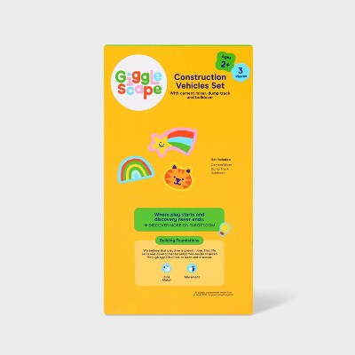 Highlights 3pc construction vehicles set Includes cement mixer, dump truck and bulldozer Suitable for ages 2+ Description Get your little builder excited for an active playtime with the Construction Vehicles Set from Gigglescape™. This pack of colorful construction vehicles includes a cement mixer, dump truck and bulldozer. They can roll the vehicles around and move the interactive parts to construct anything their imagination and creativity can build. Gigglescape™: Where play starts and discovery never ends.